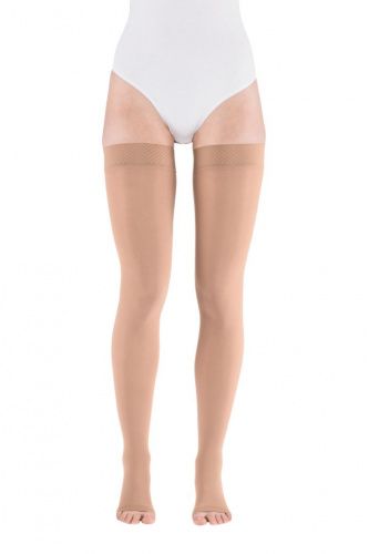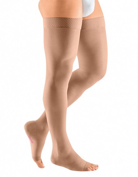 Компрессионные чулки 2-ого класса компрессии mediven plus с открытым носком и силиконовой резинкой как универсальное решение в лечении заболеваний вен.